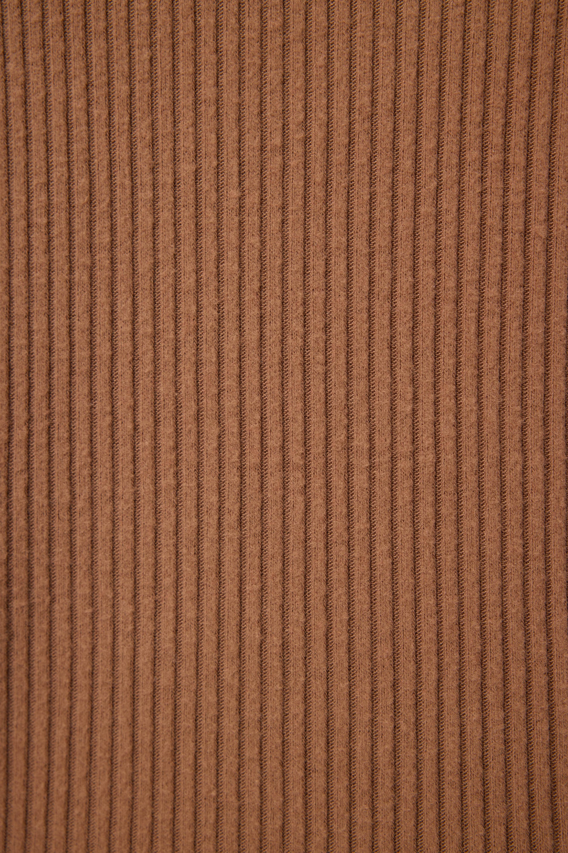 Snuggle into the holiday season with this three-piece lounge set in ultra-soft rib knit. The light brown hue brings cozy warmth to a coordinating scoop-neck tank, long-sleeve top, and relaxed wide-leg pants. Perfect for holiday movie marathons, wrapping gifts, and cozy nights in.