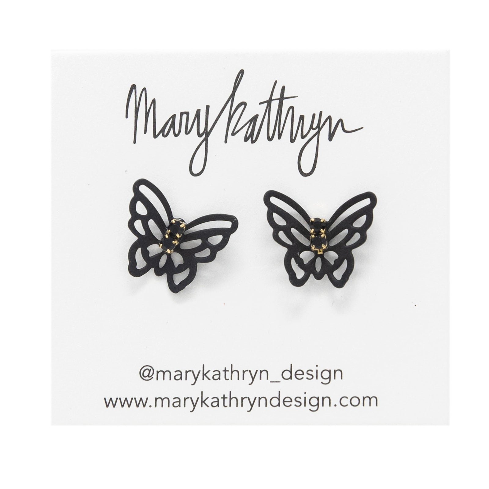 Flit and flutter your way through the day with these Black Flutter Butterfly Stud Earrings! The delicate butterflies will add a touch of whimsy to any outfit, while the black color adds a subtle yet elegant touch. Perfect for adding a playful touch to your look. (Butterfly kiss not included.)