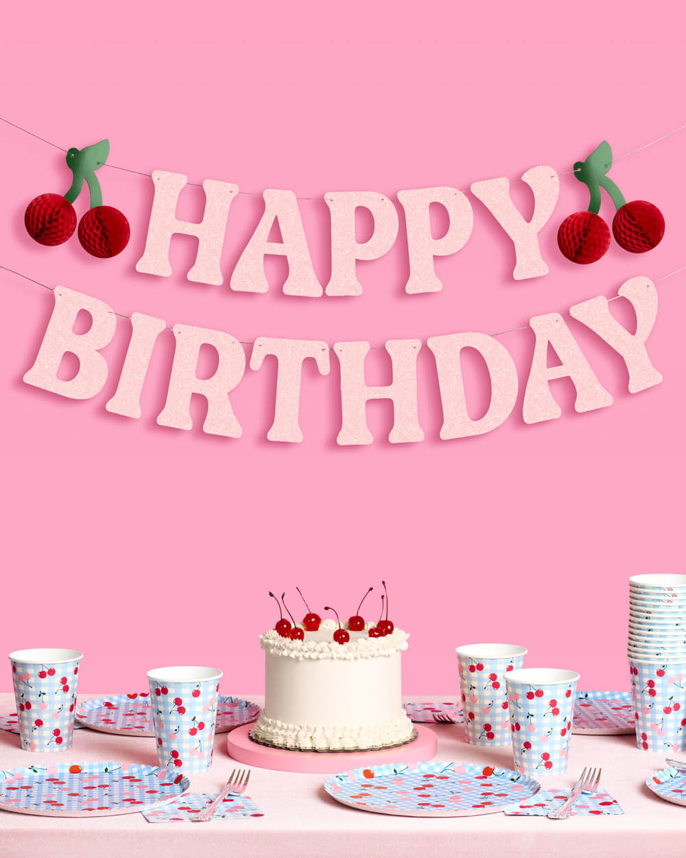 Sweet, sassy, and oh-so-fun, this cherry banner’s ready to party! Perfect for anyone who’s all about that extra sprinkle of fun with a touch of sparkle on their big day.