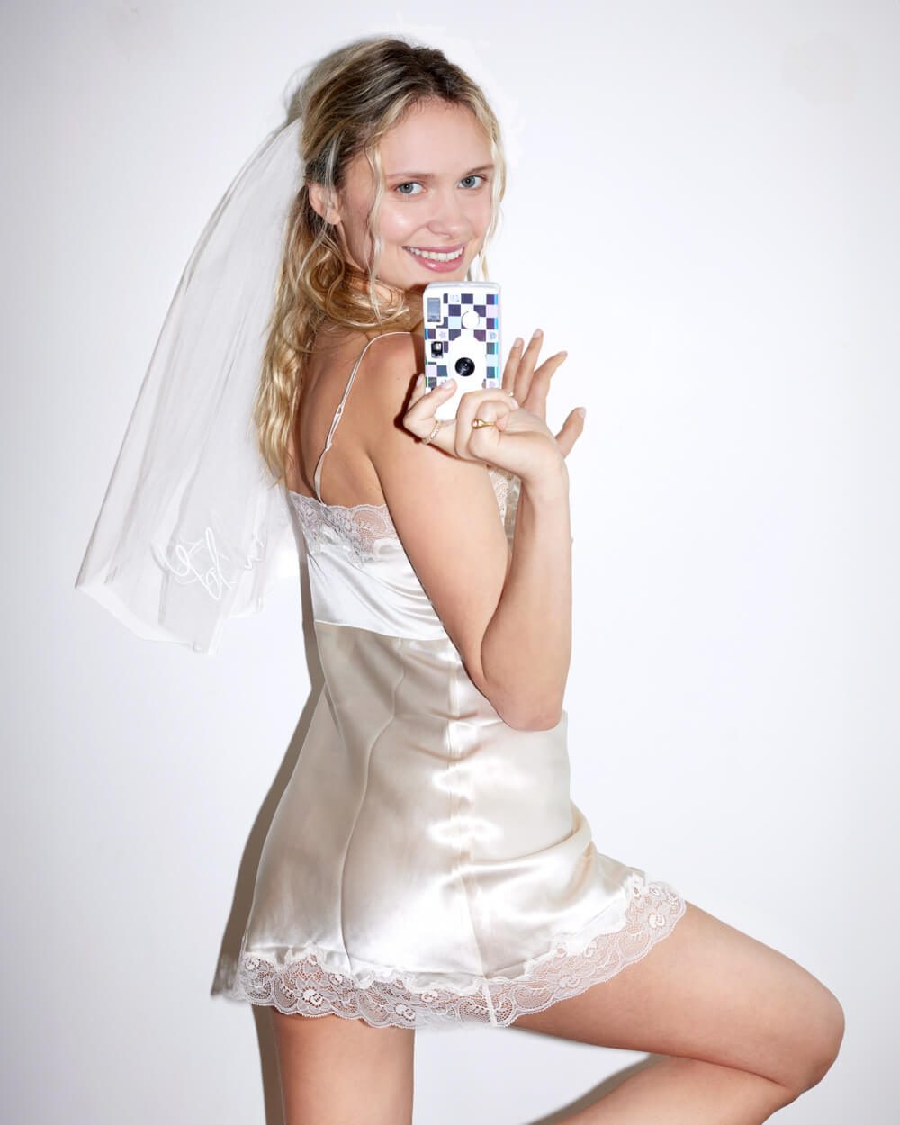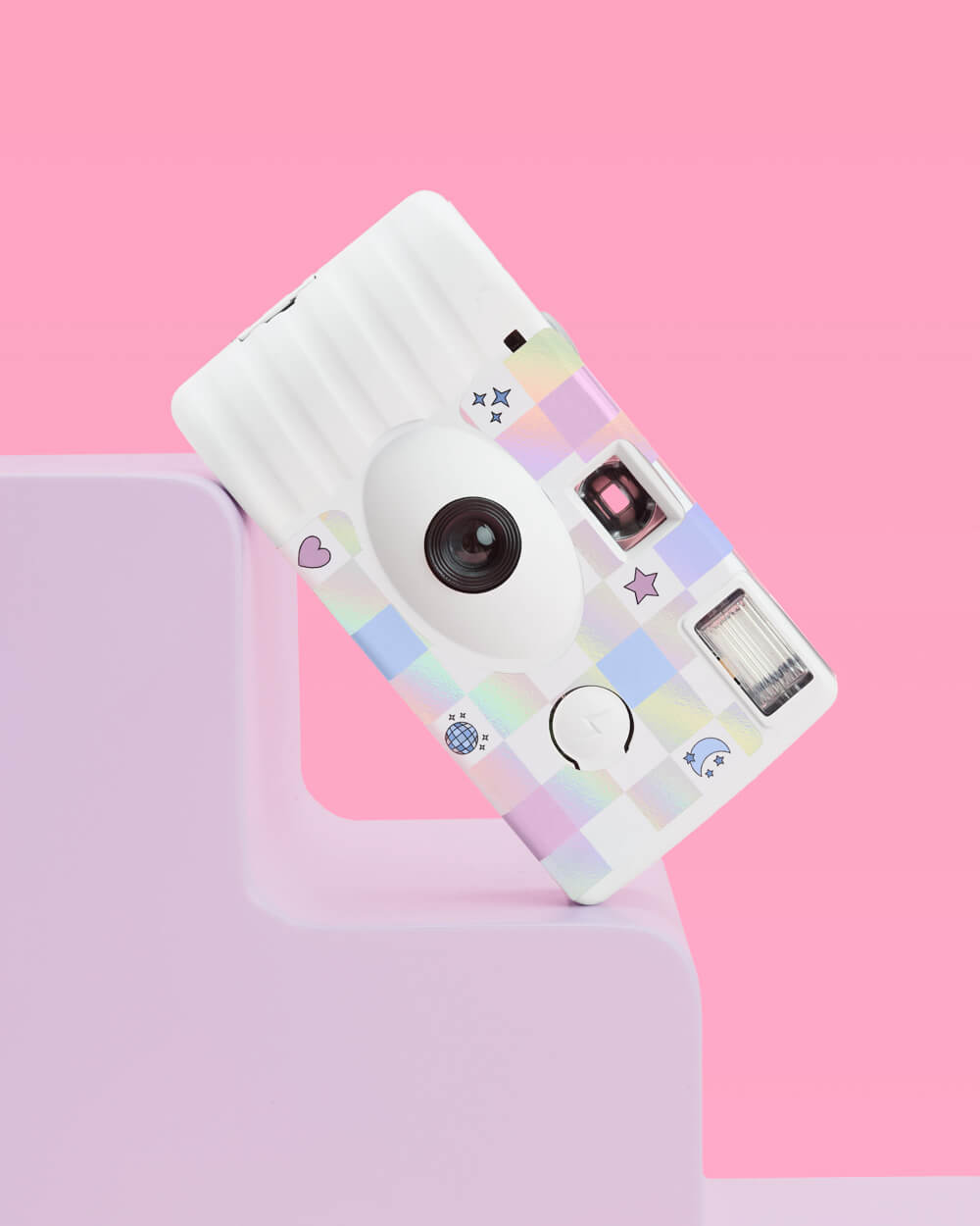 Iridescent checkered disposable camera