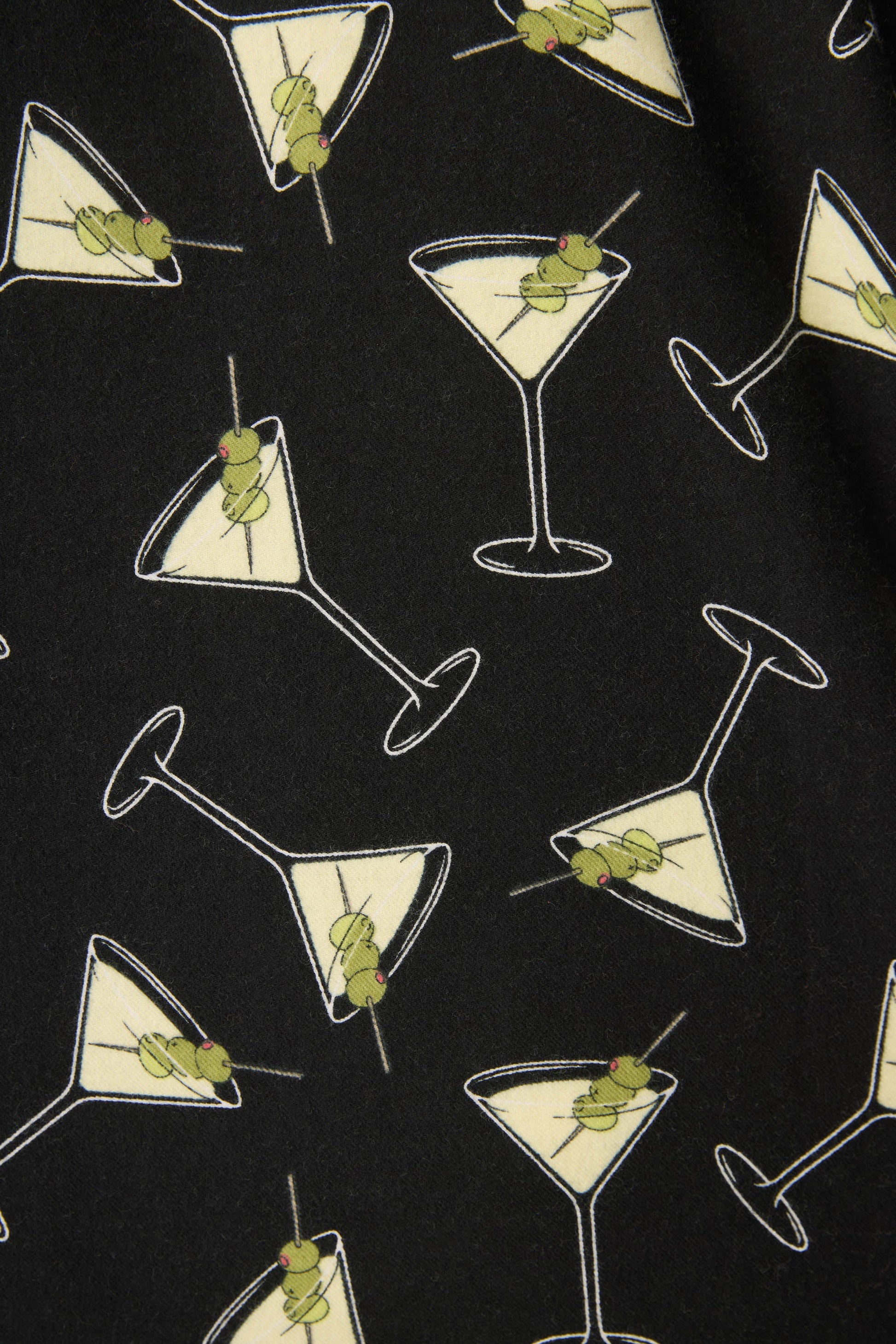 Shaken, stirred, or straight to bed—this martini-print flannel set brings cocktail lounge vibes to cozy time. Made from soft cotton in a classic twill weave, it includes a button-front top with contrast piping, relaxed drawstring pants, and a matching headband. A cheeky way to toast to comfort, whether you’re enjoying at-home happy hour or drifting into dreams.
